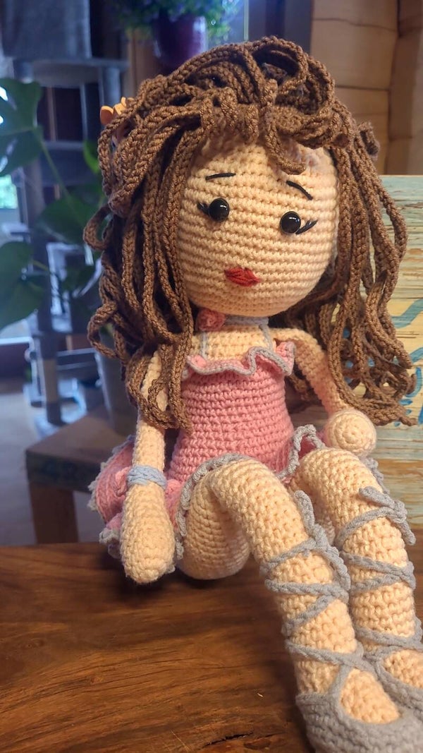 Mit ganz viel Liebe zum Detail wurde diese Hübsche Ballerina gehäkelt. Die Farbpalette ist bestens aufeinander abgestimmt. Sie wird mit hochwertigen Materialien sowie Sicherheitsaugen angefertigt. Frei von chemischen Zusätzen.